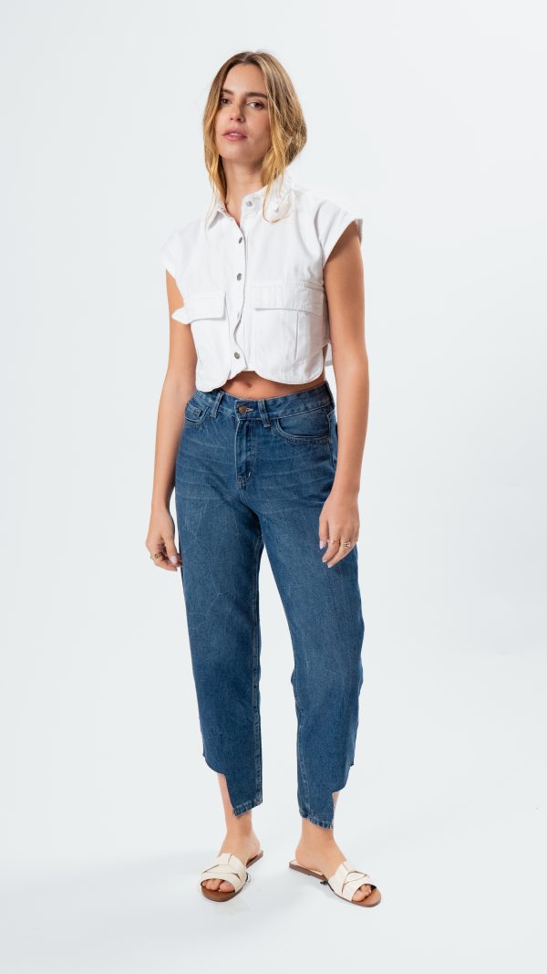 un toque especial. El pantalón es amplio desde la cadera, cuenta con