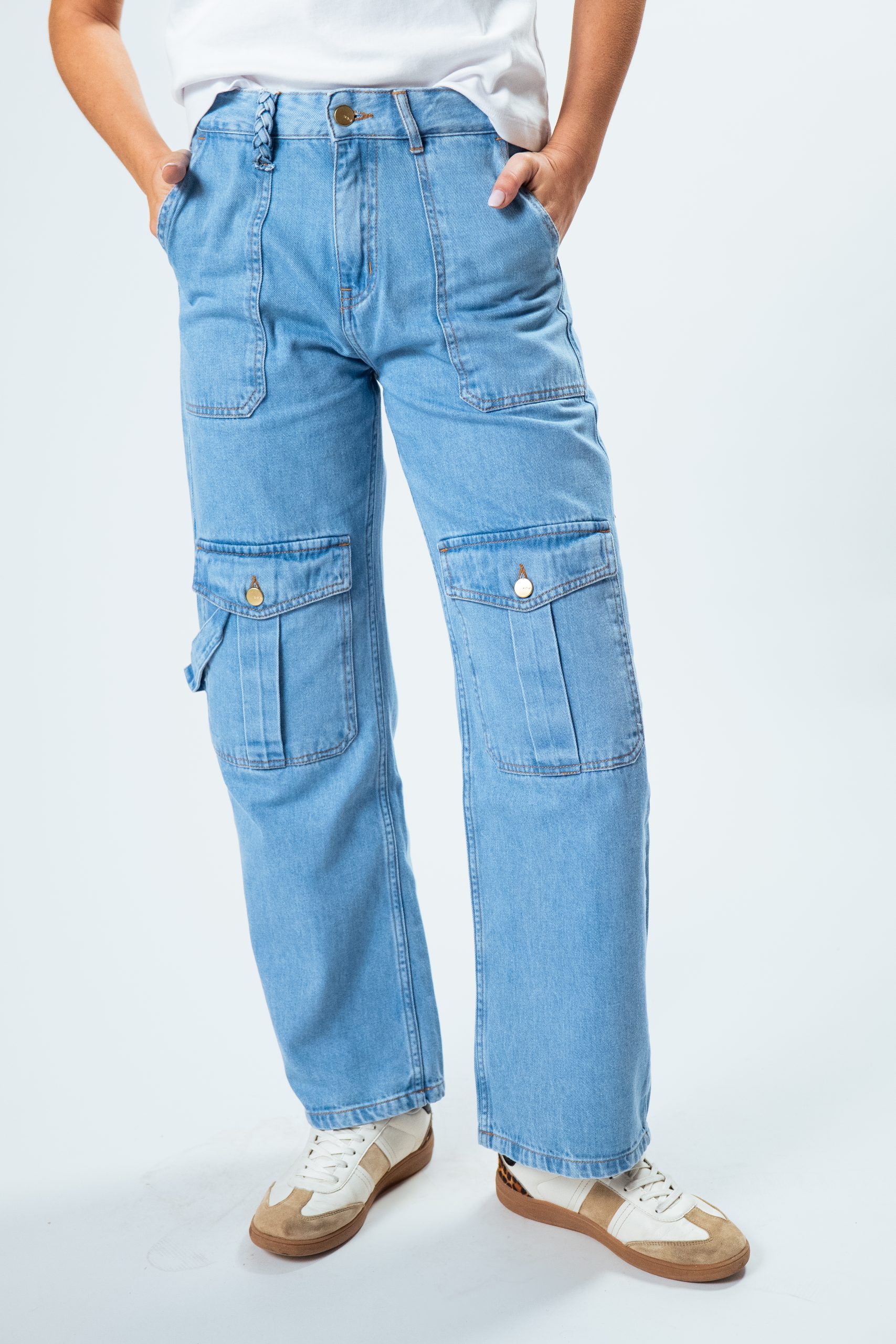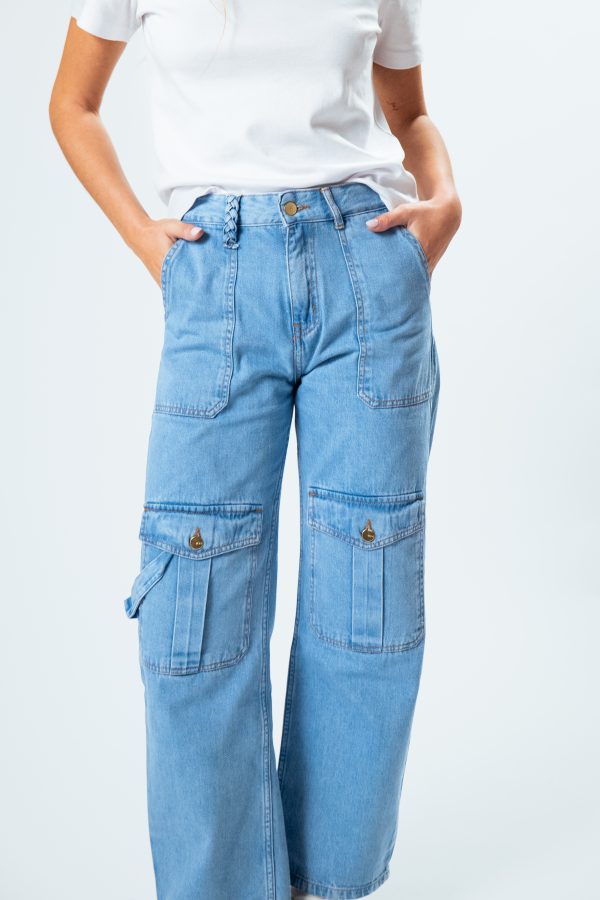 Estos balloon Jeans estan desarrollados en tela 100% en algodón, lo que le proporciona una textura suave y cómoda. Los bolsillos, ubicados estratégicamente en la parte delantera a la altura de las rodillas, añaden un toque único y funcional, brindando un look audaz y deportivo.