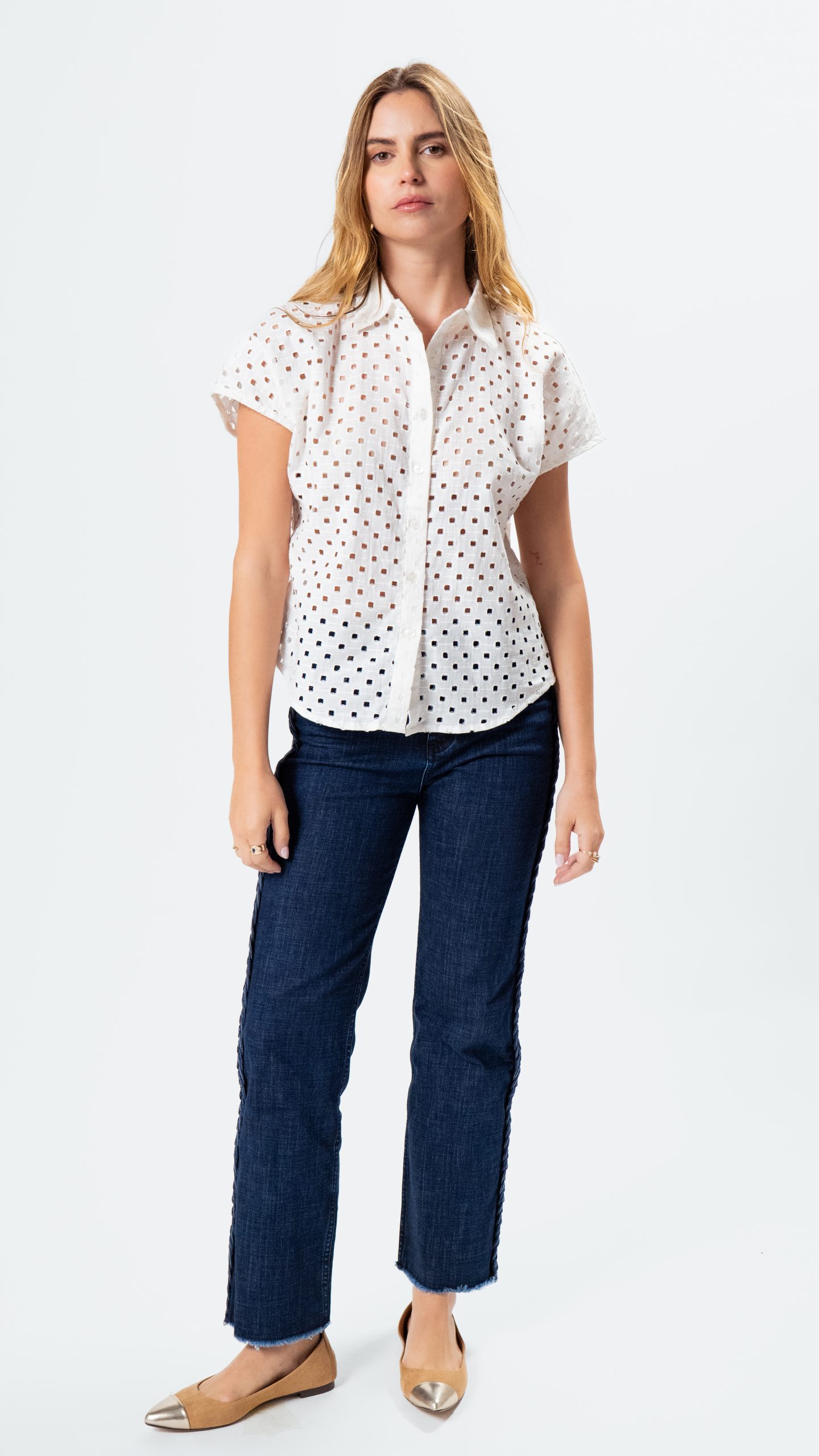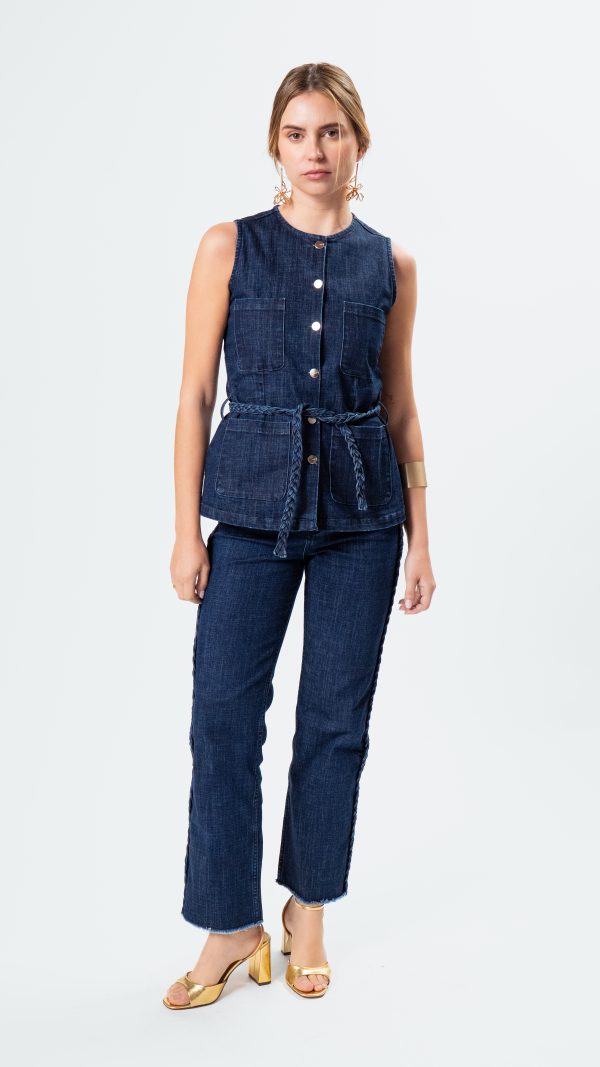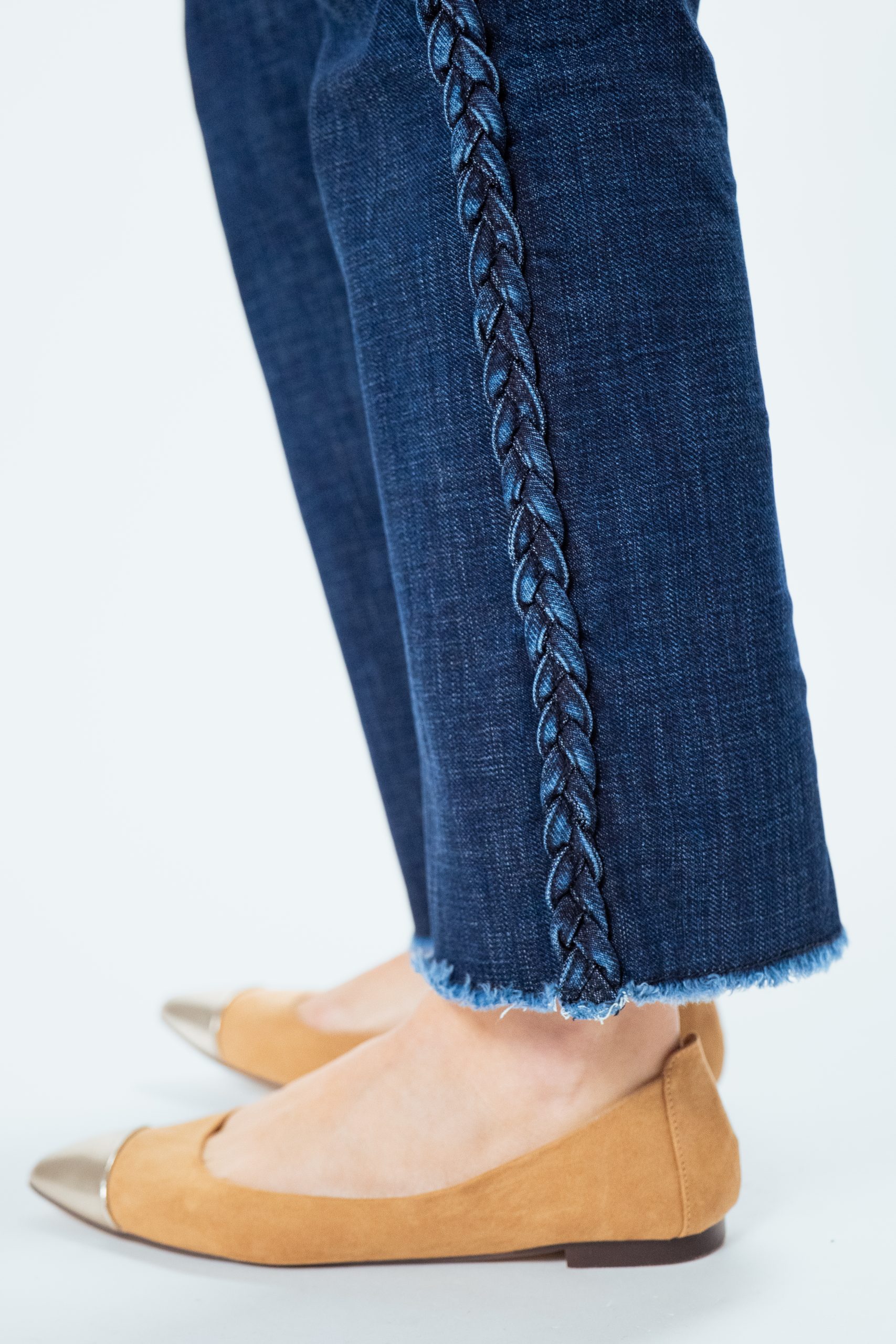 Está confeccionado en tela stretch de textura firme y cómoda, que garantiza un ajuste perfecto y una gran durabilidad. Su diseño incluye una trama Cross, un efecto visual formado por líneas verticales y horizontales que se cruzan sobre la tela, que le da un acabado único gracias al proceso de stone en lavandería. Un detalle único son las trenzas a los lados, que añaden un toque de estilo y originalidad al pantalón.